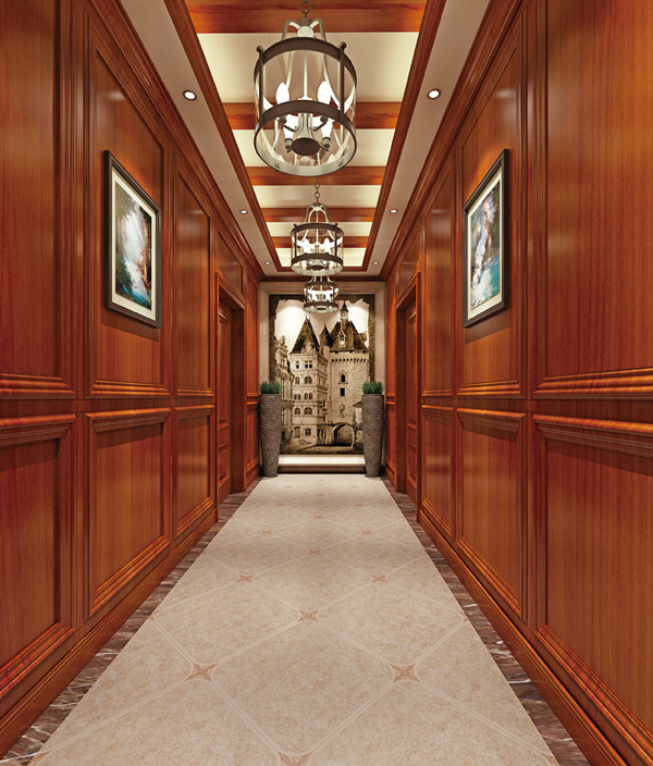 一般室內(nèi)過道的上方會(huì)有梁,所以我們一般都是選擇有吊頂?shù)奶幚矸绞健5蹴斠撕啙嵙鞒蹋瑘D案以能體現(xiàn)韻律和節(jié)奏的線性為主,橫向?yàn)榧选5蹴斠蜔艄獾脑O(shè)計(jì)協(xié)調(diào),頂面盡量用清淺的顏色,不要造成凌亂和壓抑之感。